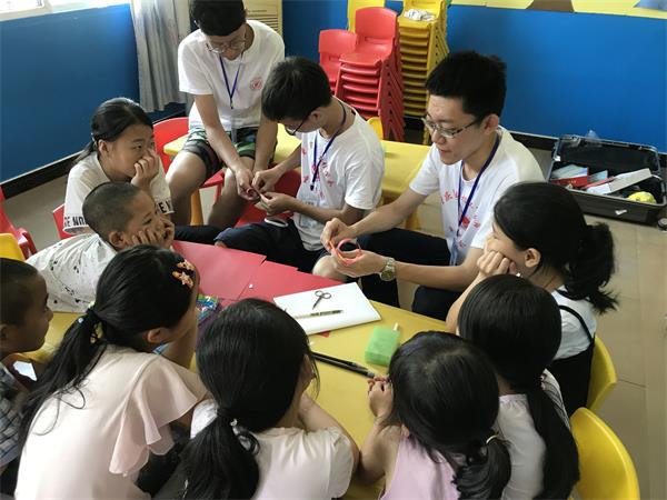 晚上,正当志愿者们准备关上幼儿园的卷帘门继续夜间工作时,附近玩耍的几个小朋友纷纷跑上前来向志愿者询问明天正式课程的实验内容。看着孩子们期待的目光,志愿者们想起了昨天探访老乡时所见孩子们的艰苦生活状况,感到欣慰的同时也感受到了更加深切的责任感。随着科技支教活动的正式开始,志愿者们将秉承本次“三下乡”科技支教活动“精准扶贫·爱心筑梦”的宗旨,用自身的学识和志愿服务热情,努力发光发热。