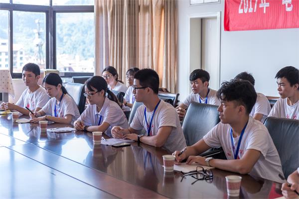 座谈会接近尾声,谢书记向三下乡全体志愿者们表达了由衷的感谢,并提出“人才可持续输入”的理念。他倡议由高校牵头,在祖国边远县市设立三下乡实践基地,将团中央号召的大学生“三下乡”社会实践活动真正做实、做好、做长久。谢书记的想法引起了志愿者们的深刻反思。 座谈会已经结束了,但大家还沉浸在与谢书记的交流中,深刻地认识到了助力国家脱贫扶贫政策,是大学生的责任与使命,大学生应该为了吾国与吾民的幸福安康挥洒热血与青春。