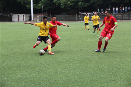 研究生足球联赛淘汰赛在A区团结广场如期进行。电气学院迎战卫冕冠军机械学院,从去年的冠亚之争到今日的狭路相逢,电气学院士气高涨,最终在点球大战中以4:3惊险取胜,晋级六强。