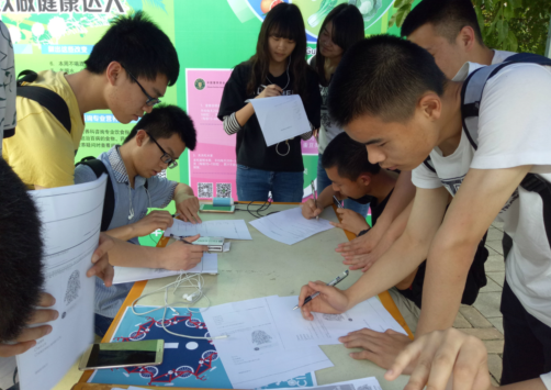 12点10分下课后众多同学来到线下活动场地积极参与问卷调查和自行车登记,包括黄色动漫