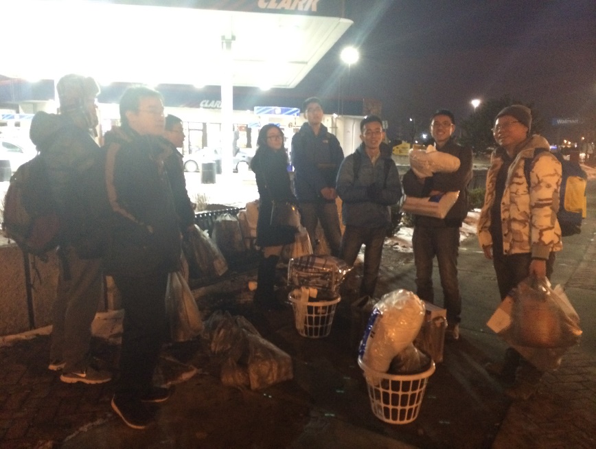 美国大多数城市的公共交通系统还是比较发达的,在密尔沃基就是有各种便捷的公交线路。初到密尔沃基时是冬天,密尔沃基又是出名的冷,常年在南方生活的我们当时特别不适应,出门捂得严严实实。和中国不一样,美国的生活物资集中在大型超市例如Walmart,店也不算太多,所以美国人一般每次去超市都是采购一大堆物品,基本满足家庭一周的消耗。但由于美国汽车价格和汽油价格非常便宜(我们曾做过计算,美国汽油每加仑单价比矿泉水还要便宜),汽车非常普及,对于每个家庭来说也非常方便。然而对于只有乘坐公交车的我们来说是个不小的挑战。到现在,每次“扛”着超重的食材和生活用品顶着寒风回宿舍的场景依旧历历在目。