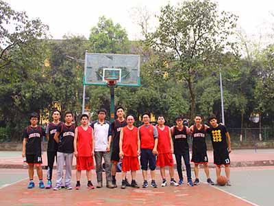 三场比赛分别是研一联合队VS研二三电班、研一新技术队VS教师队、研三新技术队VS研二新技术队。三场比赛同时进行,让人目不暇接,运动场上队员们迅速进入状态以矫健熟练的动作迅速传球,争夺篮板也是异常激烈。篮球场上你争我夺,不断地断球快攻令人眼花缭乱。赛场旁的观众们也是投入激烈的比赛中,不断为自己喜欢的球队加油鼓劲,助威呐喊,球场气氛十分活跃。
