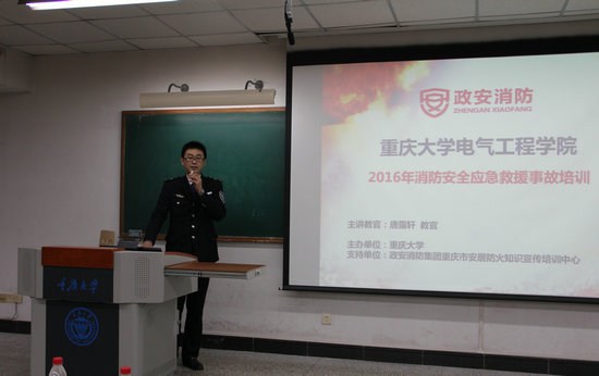 邀请重庆安居防火知识宣传培训中心唐露轩警官在研究生院306阶梯教室举行了安全知识培训讲座。学院党政班子及全院教职员工100余人参加了此次培训。