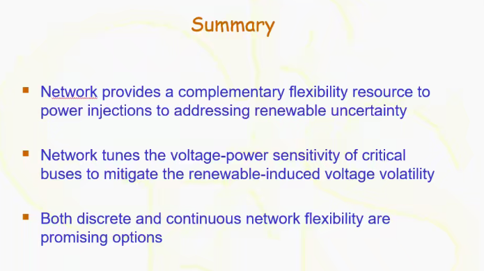 最后,宋教授通过配电网的重构模型验证了网络为电力注入提供了补充的灵活性资源,解决了可再生能源的不确定性。并且指出,网络调节的关键在于总线的电压、功率灵敏度,这对减轻可再生能源引起的电压波动起到至关重要的作用。