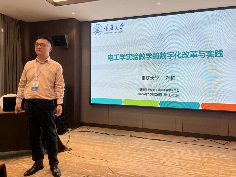 在实践教学分会场,我校电工理论与新技术实验室主任孙韬为大家分享了“电工学实验教学的数字化改革与实践”,报告从黄色动漫