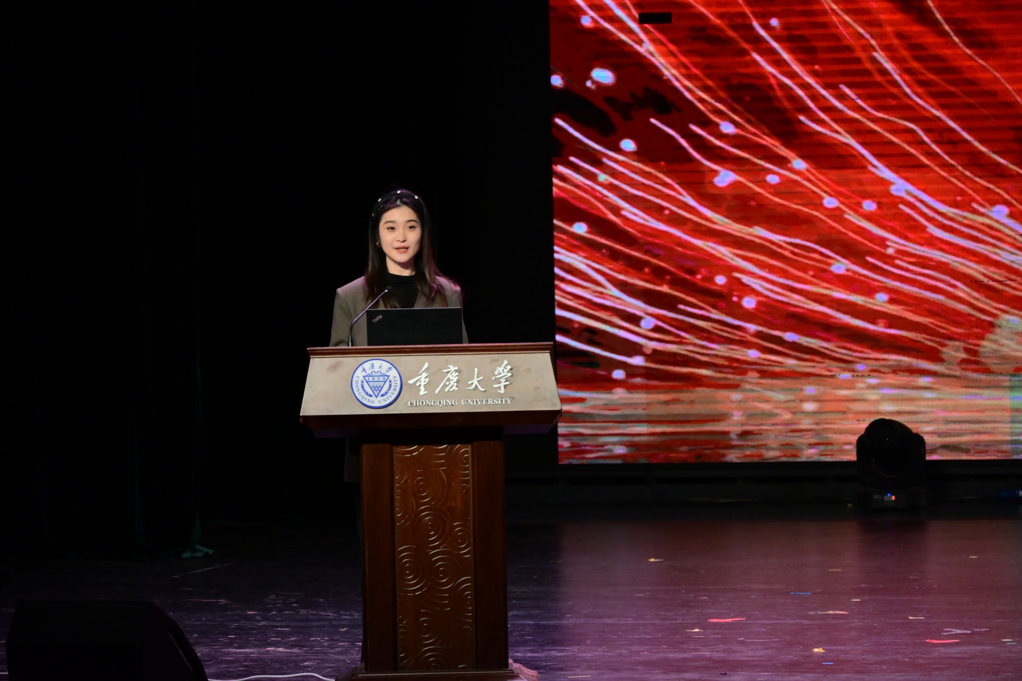 2021级本科生林子洋同学作为获奖学生代表发言,她从创新创业、社会实践、志愿服务、学习生活等方面,讲述了自己在学院和老师的培养下不断成长的故事,并表示将继续保持奋进姿态,传承电气青年的责任与担当。