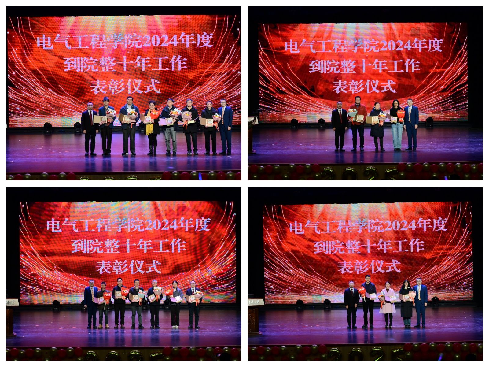 在到院工作整十年教职工代表表彰仪式上,谢开贵代表学院分别为到院工作40周年的王明渝、卢继平、杨浩、罗建、周林、侯世英、熊小伏等,到院工作30周年的王晓静、龙利、沈智健、张占龙、陈伟根、熊兰等,到院工作20周年的王有元、卢伟国、米彦、李春燕、张淮清、周念成、胡建林等,到院工作10周年的王中香、杨春花、欧阳金鑫、赵学童等老师献上饱含敬意的鲜花与特制纪念奖杯,感谢其数十年砥砺前行,与学院风雨同舟,见证并助力学院在九十载征程中稳步发展,是学院发展的中坚力量与精神楷模。