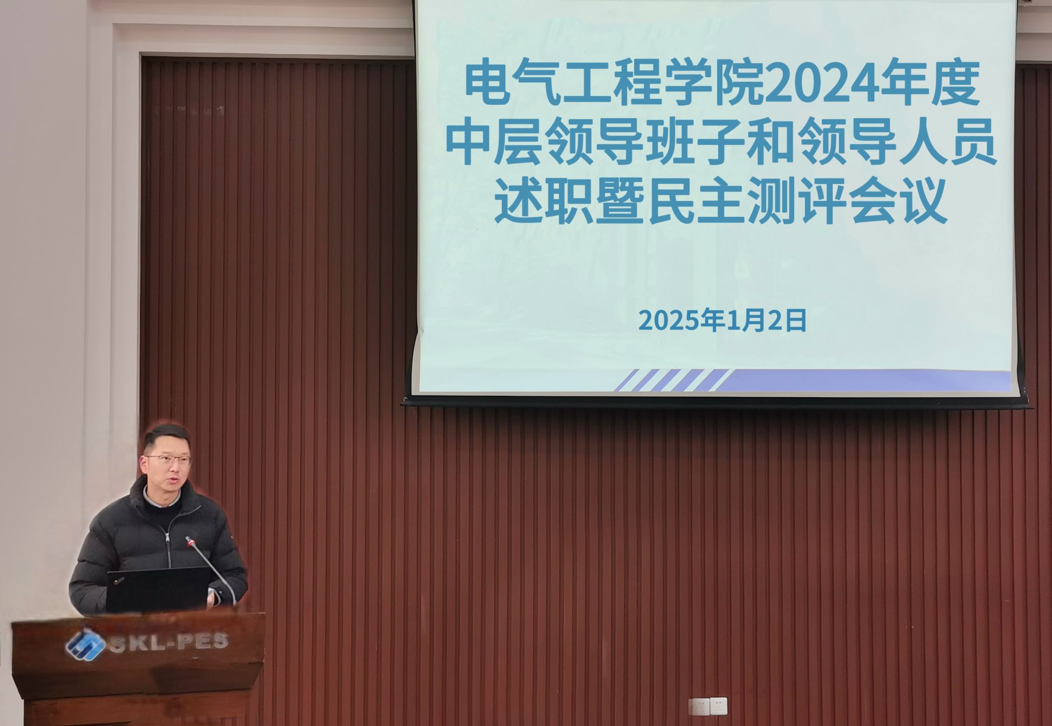 接着,学院领导班子及领导人员进行了 2024 年度述职。他们从学院的党政管理、人才培养、师资队伍、科学研究、国际交流等方面,全面回顾了过去一年的工作成果,深入分析了存在的问题与不足,并对未来的发展方向和工作重点提出了规划与设想。