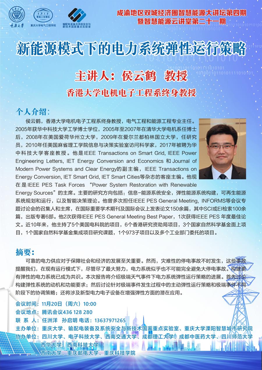 成渝地区双城经济圈智慧能源大讲坛第四期暨智慧能源云讲堂第二十一期