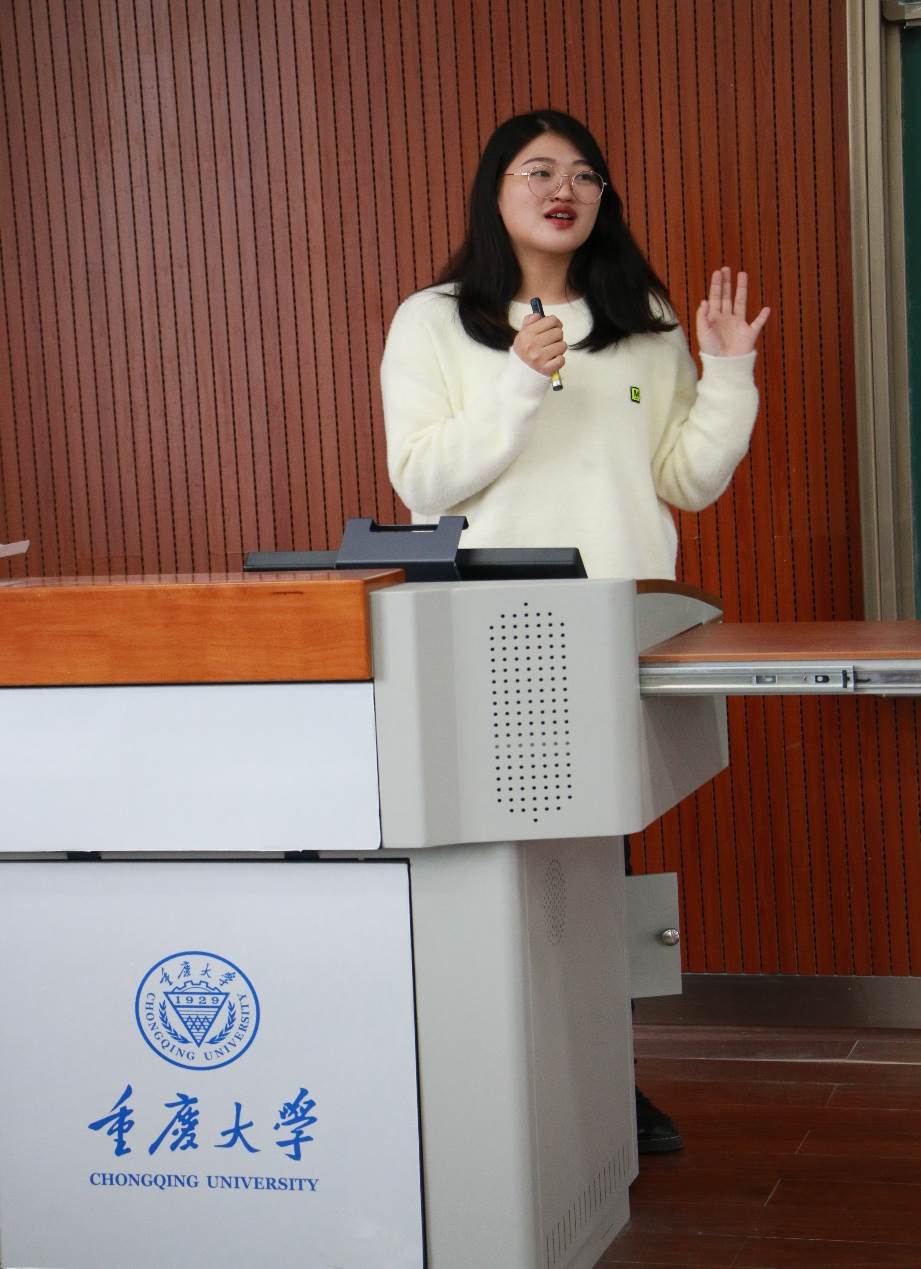 紧接着,沈婷学姐上台分享。学姐用诙谐幽默的口吻,向同学们讲述了自己从本科材料学专业,因为遇到喜欢的课题,从而跨专业保研来到电气工程专业继续进行科研学习和竞赛的经历。可想而知,轻松的语调背后是无数的努力与汗水。学姐说,本科阶段应该多注重学习,养成规律作息和良好的生活习惯。同时,科研类训练也很重要,她鼓励大家在学习之余多尝试竞赛,不要急于求成,多加历练,积累经验。学姐认为“不聪明但能吃苦,比别人能拼能熬”是她能够比别人优秀的秘诀。