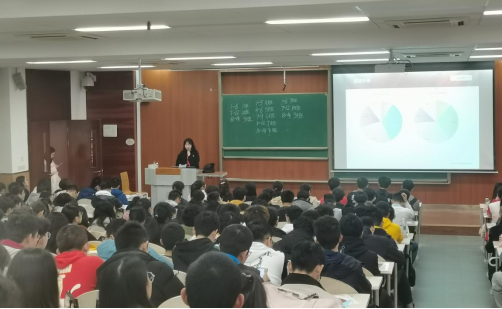 兼职辅导员林子月分析了上一学期的成绩情况,并就此对同学们提出了三条针对性建议:第一,学会时间管理,做一个自律的大学生;第二,重视外语学习,通过练习真题、背单词、阅读外文外刊等途径来进行四六级备考;第三,端正心态,多与学长学姐交流,规划好专业学习方向,树立正确的人生方向。