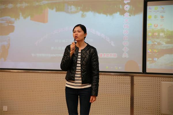 接下来是喻惠老师发言,喻老师首先感谢了参加运动会出场方阵和健身舞起来弹力带比赛的同学,并对他们进行了表扬,引起了台下同学们的热烈的掌声。喻老师接着又表扬了荣获五四红旗团支部的2016级4班和获得优秀团日活动称号的2016级3班和4班,并号召其他班级积极向它们学习,在同学中引起了强烈的反响和积极的回应。喻老师再次强调了室友关系、寝室卫生等问题,援引往届同学的实例,让同学们感触颇深。最后喻老师布置了五一放假的相关工作,把年级工作安排得井井有条。