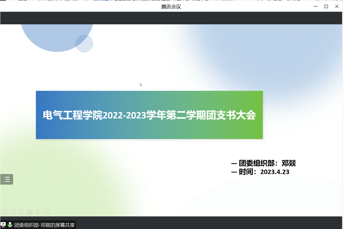 2022-2023学年第二学期团支书大会在线上举行。本次大会由团委组织部成员杜一樊主持,黄色动漫