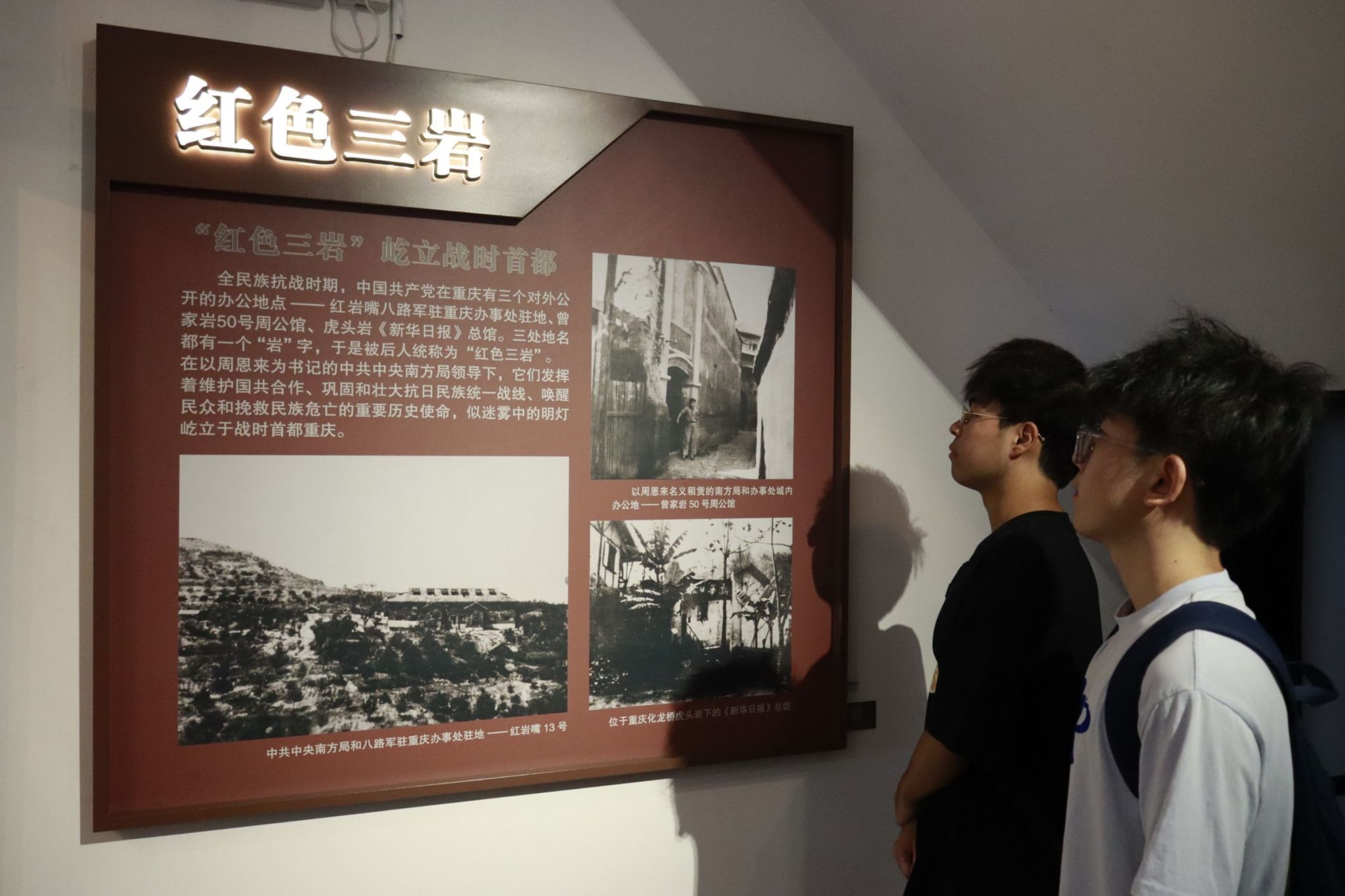 学生组成的“寻红岩,悟精神”社会实践团再次出发。这是此次暑期社会实践的第2天。今天他们实地调研参观了周公馆和桂园。